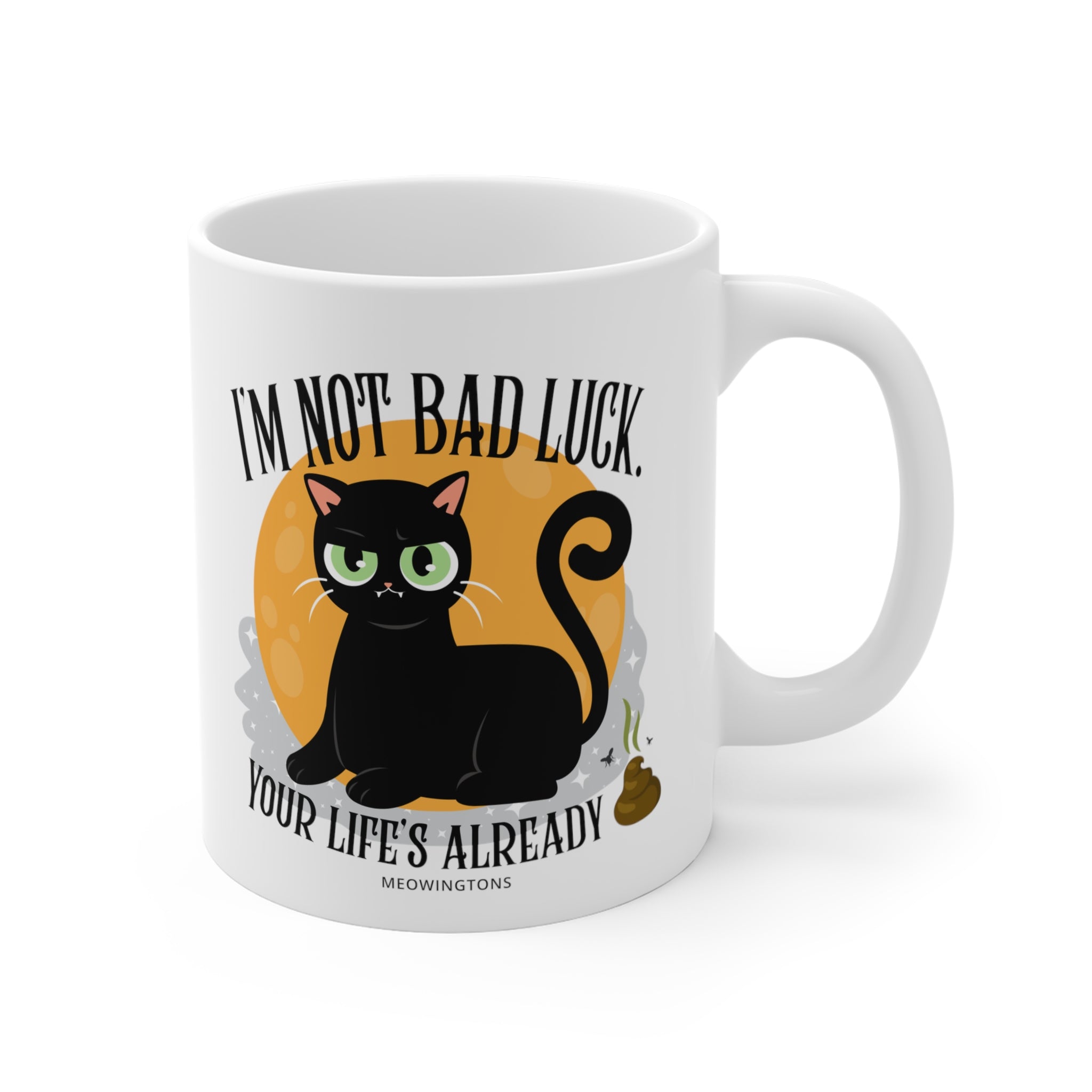 Have you ever met a cat with more attitude than a black cat under a full moon? This black cat mug features a cheeky black cat silhouetted against a glowing moon, and it's here to set the record straight: Black cats aren't bad luck, your life was already shitty. With a sense of humor as sharp as their claws, this cat knows how to keep it real during Halloween or any time of year.