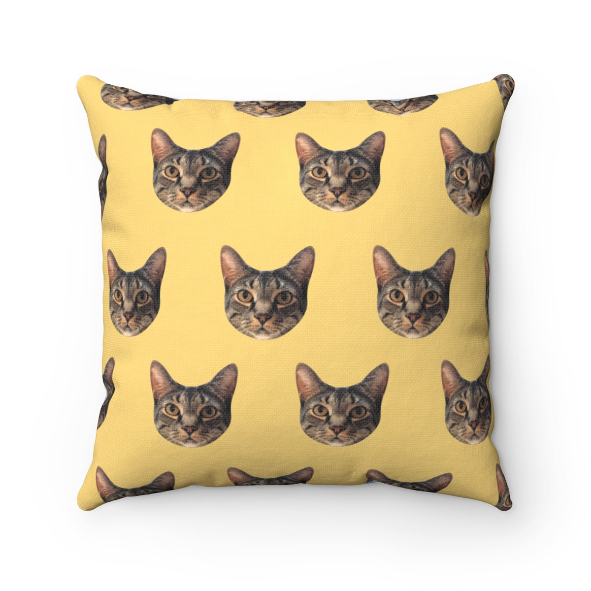 Get ready to show off your pet like never before (and tons of snuggles) with a Custom Cat Toss Pillow! Custom printed for each customer, your cat pillow cover will feature a photo of your beloved pet in a seamless repeating pattern.