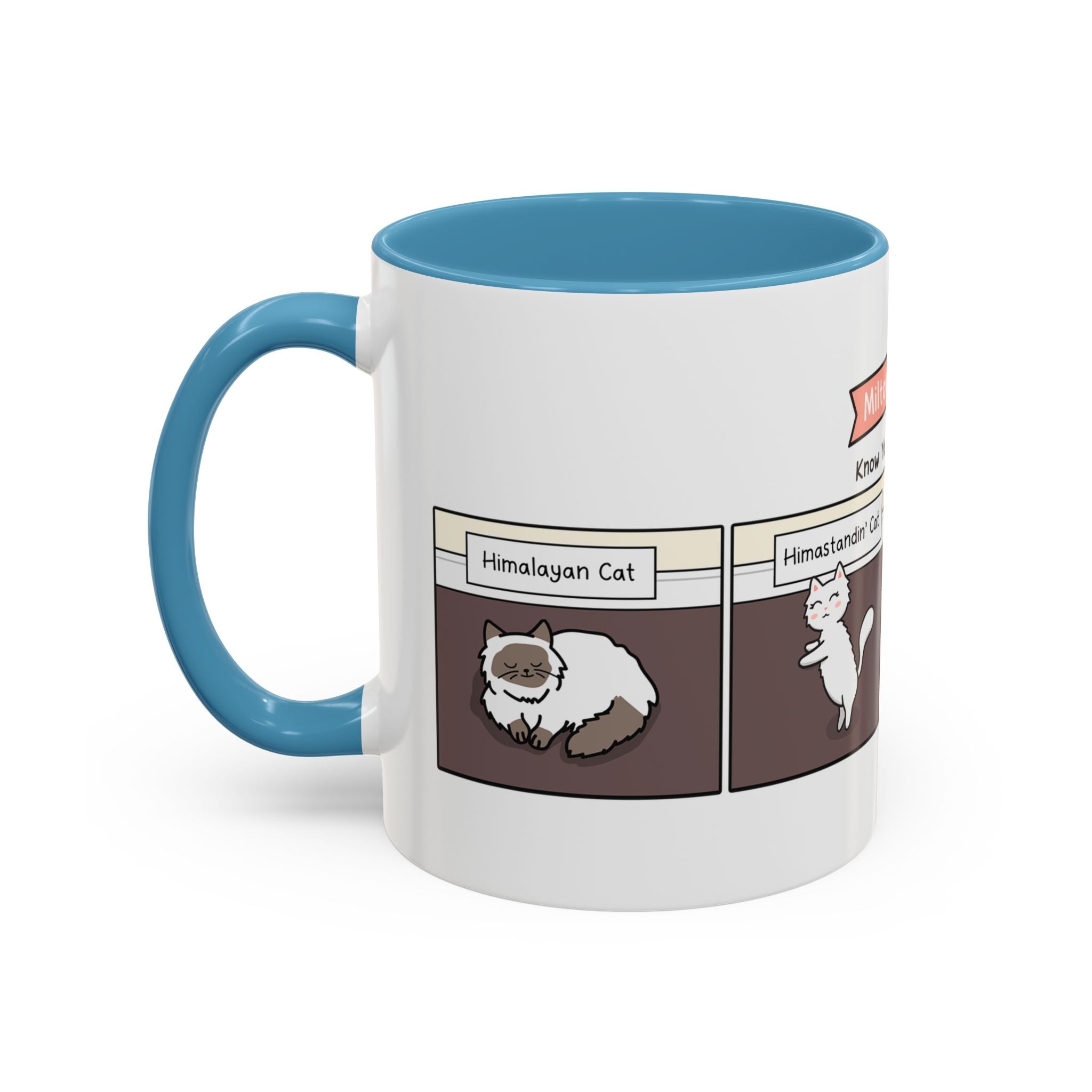 Introducing the purr-fect addition to your morning routine: the Know Your Cat Breeds Cat Comic Coffee Mug ! Start your day with a smile as you sip your favorite brew from this adorable mug adorned with a colorful handle and interior, adding a pop of personality to your morning ritual.