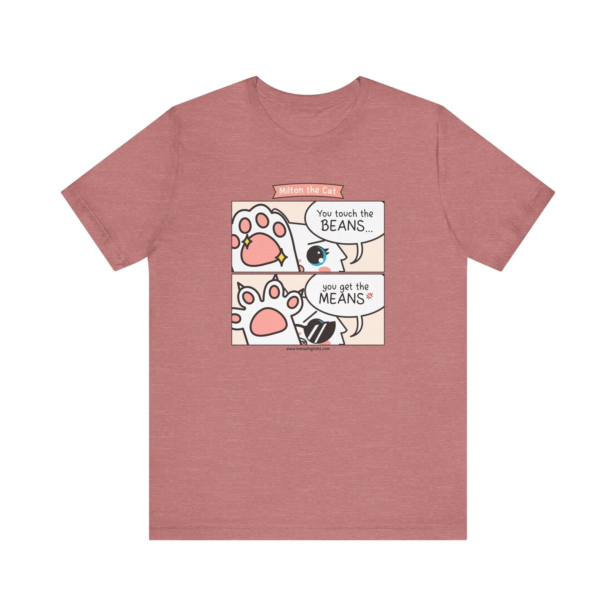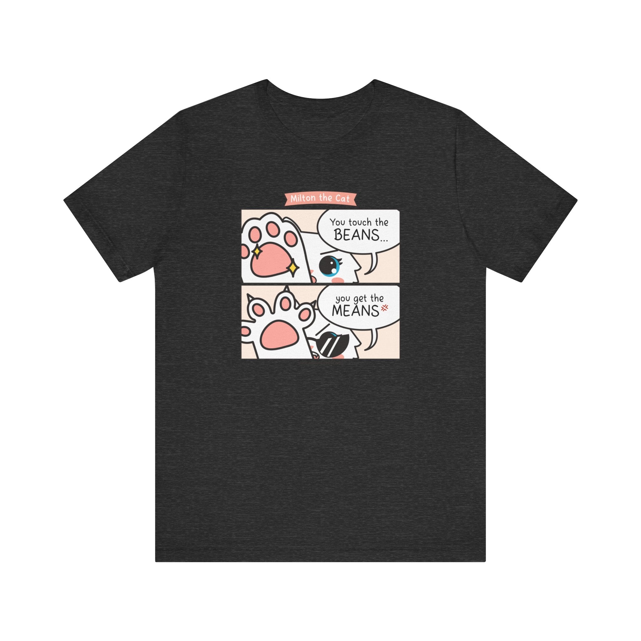 Whether you're lounging at home, running errands, or hanging out with friends, this versatile unisex tee is the perfect addition to any casual outfit. With a comfortable fit and a design that exudes personality, the Touch The Beans & Get The Means Comic Unisex T-Shirt is sure to become a wardrobe favorite for cat lovers of all ages.